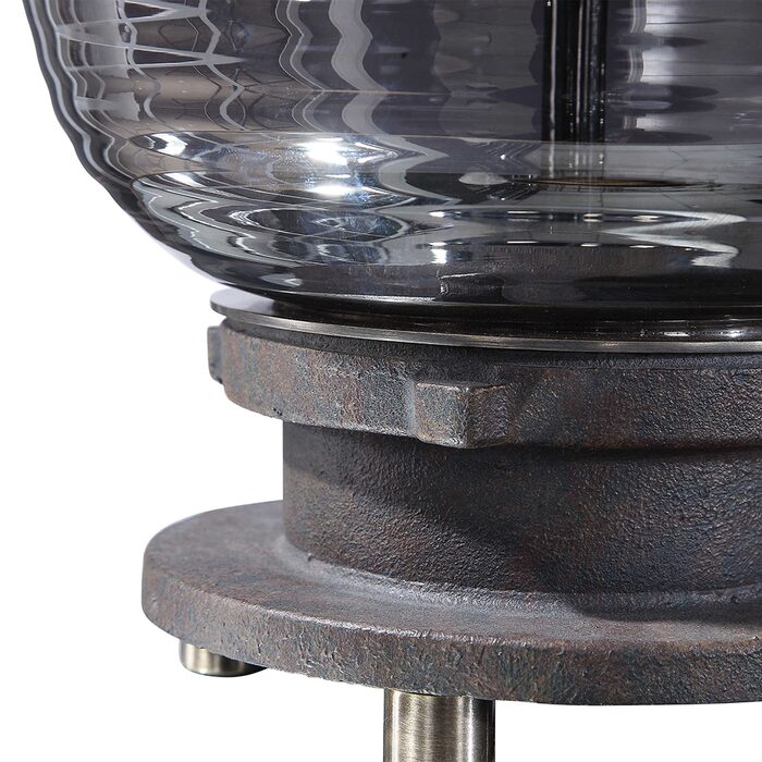 Steel accents are finished in brushed brass and a cast iron, aged rust black foot completes this design.