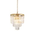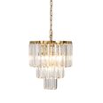 The Celestial Crystal Glass Chandelier is a breathtaking example of transitional design, seamlessly merging traditional elegance with contemporary sophistication. Its elongated rectangular crystal prisms are thoughtfully arranged to capture and reflect light, producing a radiant, prismatic effect that enhances any room with a sense of luxury and depth.