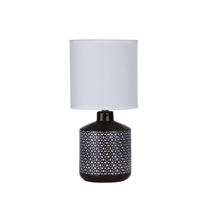 CELIA ceramic table lamp complete with fabric shade. The Celia base has an embossed geometric pattern and is supplied with an off-white poly-cotton laminated shade.