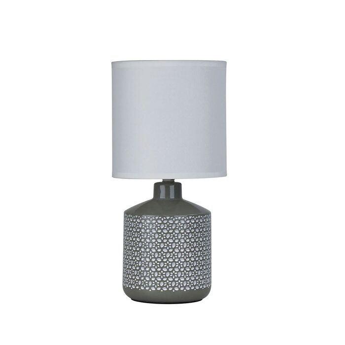 CELIA ceramic table lamp complete with fabric shade. The Celia base has an embossed geometric pattern and is supplied with an off-white poly-cotton laminated shade.