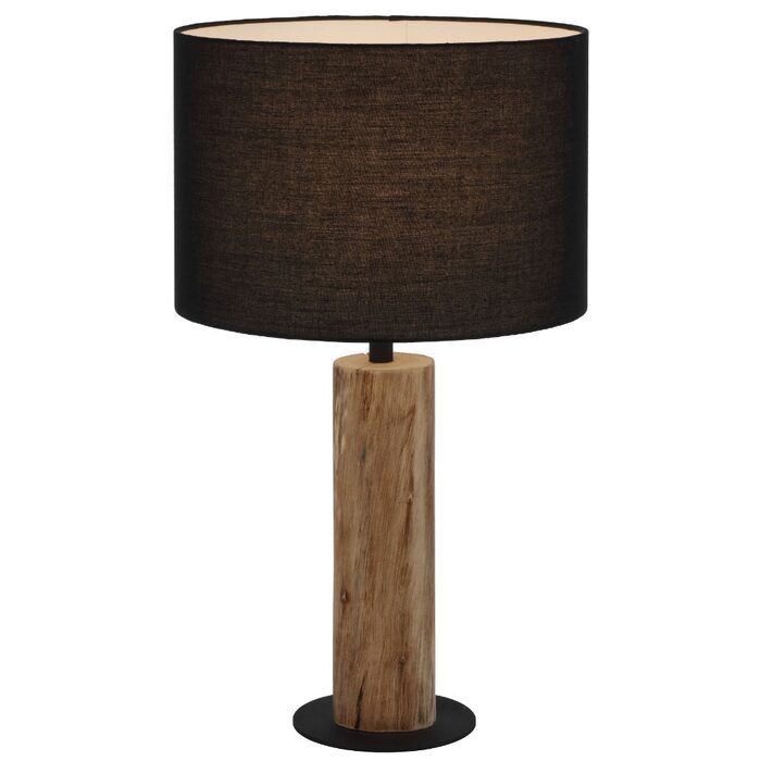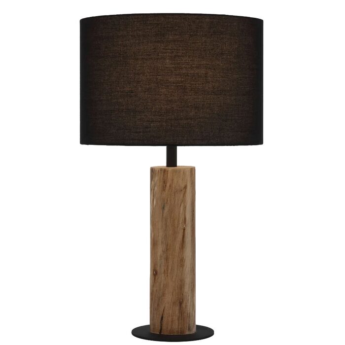 The Chad Lamp series features a contemporary design with a sturdy wood and iron base and sleek black fabric shade.