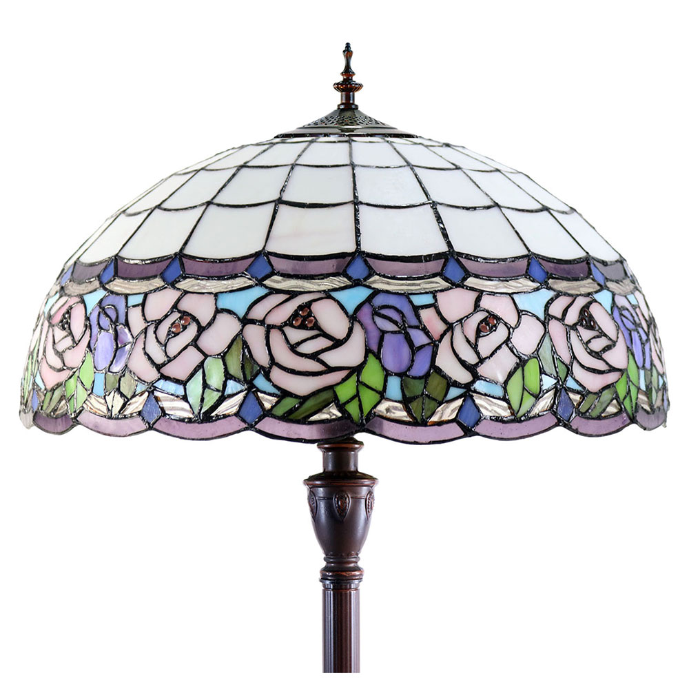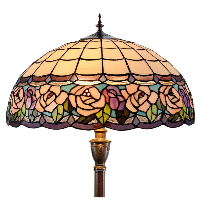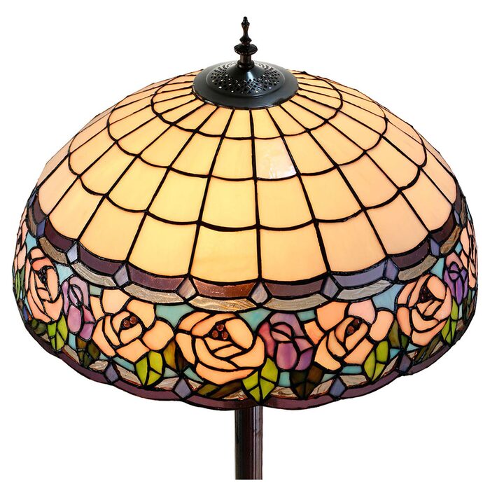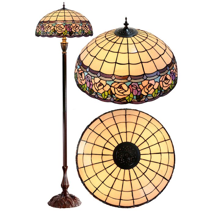 This beautiful floor lamp features a handcrafted, genuine chandell design on stained art glass shade combined with beautiful base and frame made of resin.