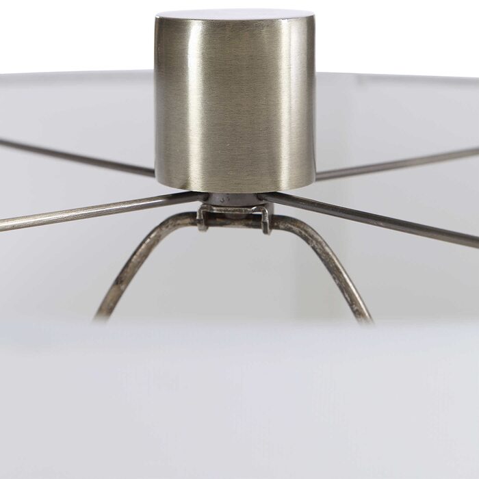 The hardback drum shade is a white linen fabric.