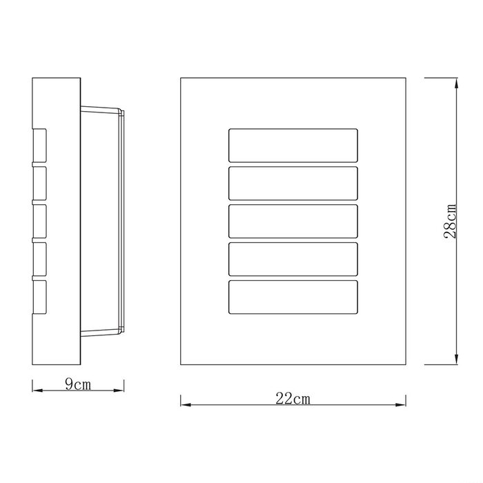 CHEETA outdoor wall light emits a wash of light from around the sides and through the slats at the front.