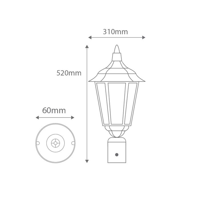 Chester Large 1 light die-cast aluminium and moulded acrylic lens post top complete with 60mm fitter. Made in Italy, assembled and powder coated in Australia.