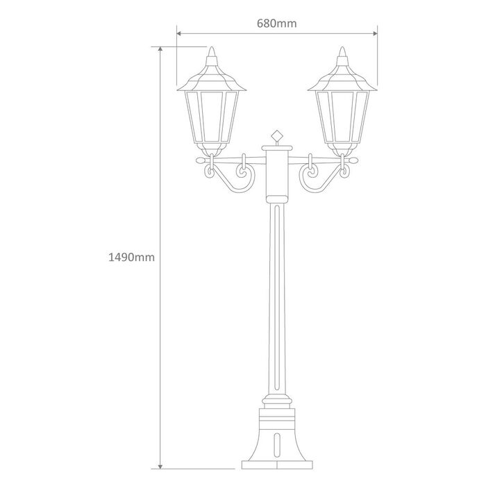 Chester 2 light die-cast aluminium and moulded acrylic lens twin head 1.49m post light. Made in Italy, assembled and powder coated in Australia.