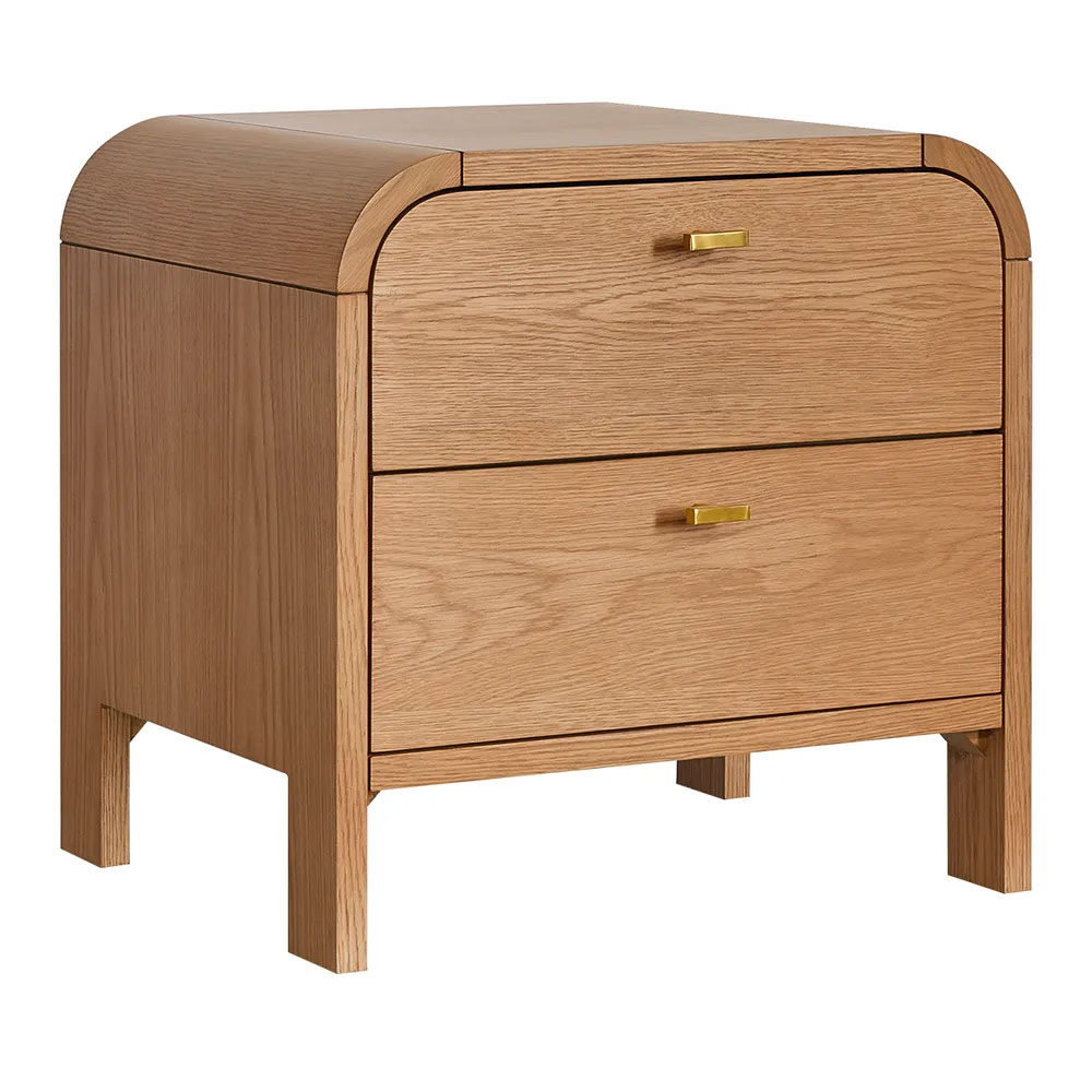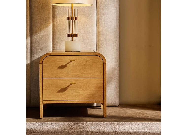 Crafted in a warm natural oak veneer, it features the collection’s signature soft curves and sleek profile, blending effortlessly into both contemporary and traditional bedrooms.