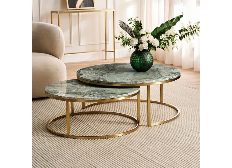 The Chloe Dusty Jade Marble Nesting Coffee Tables bring layered luxury and versatility to modern interiors.