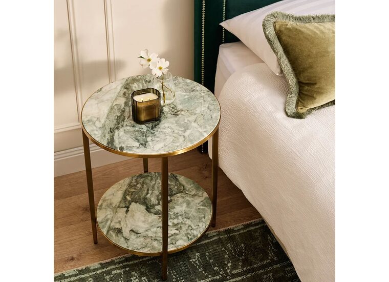 The Chloe Dusty Jade Marble Side Table is a small piece with grand presence.