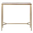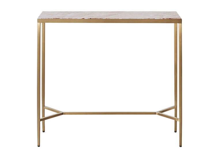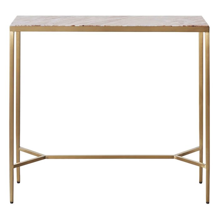 Grace your home with the quiet elegance of the Chloe Pink Marble Console Table in Gold.