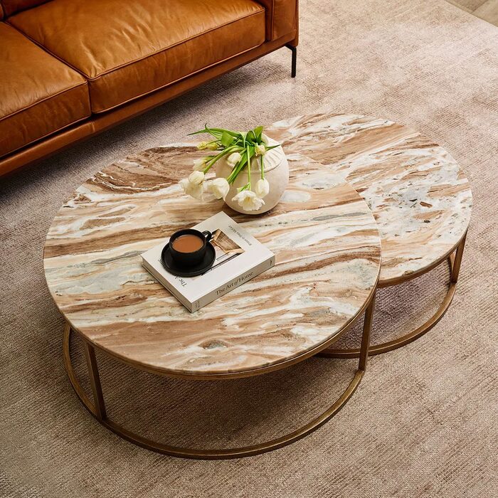The nesting design offers stylish versatility, perfect for layering in compact spaces or spreading out in larger rooms.