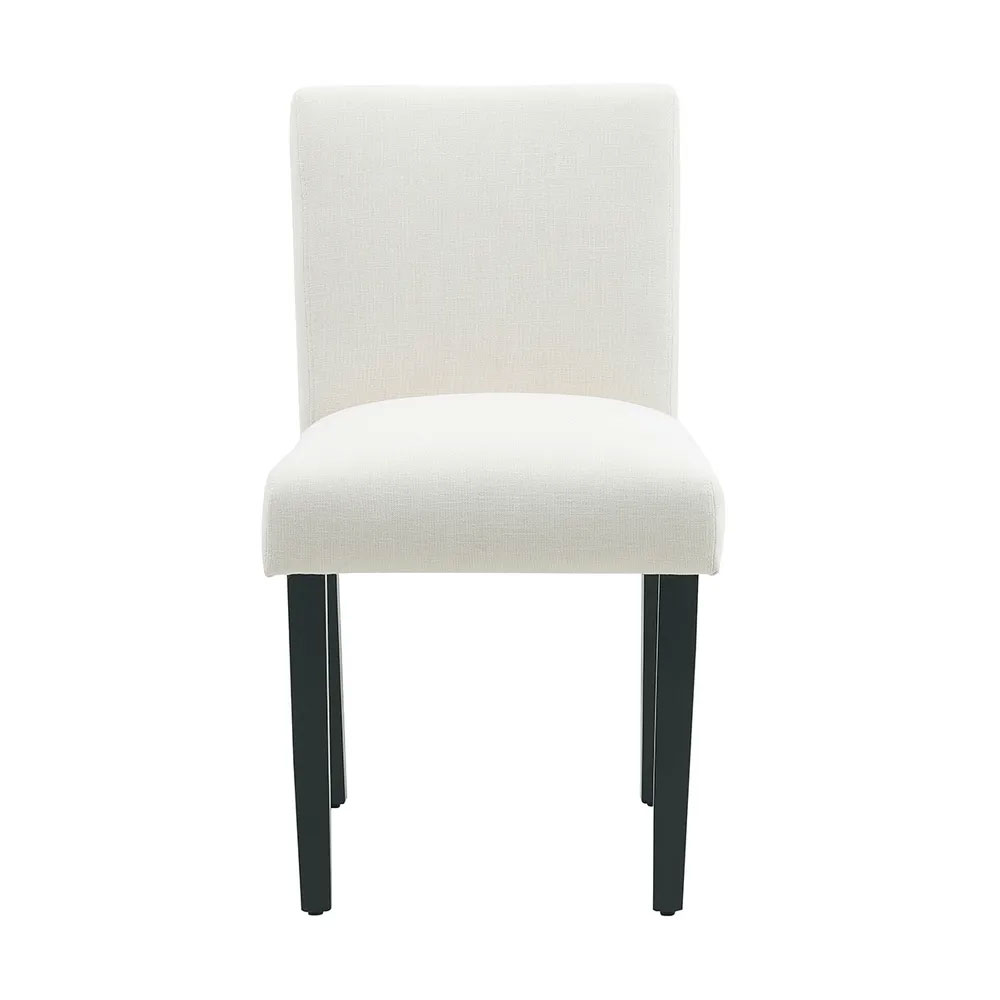 Upholstered in a soft, neutral fabric, these chairs are versatile enough to complement a wide range of interiors, from contemporary to classic.