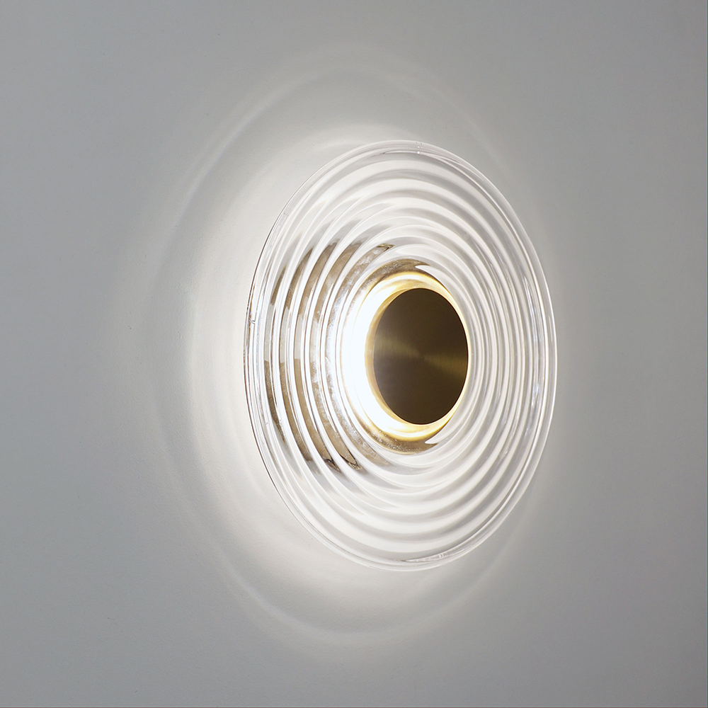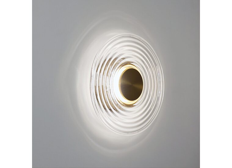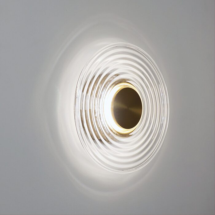 Inspired by the ripple effect of a water droplet this fitting features a beautiful backlit clear glass disk which casts a soft shadow around the wall.