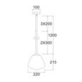 - Suspension: 3x 200mm + 2x 300mm Rods (Rods can be removed to reach desired length)
