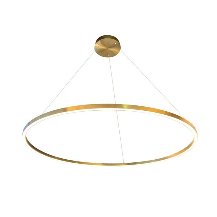 The Circle down is a sleek, gold halo pendant with an integrated LED panel and suspended on 3 stainless steel cables which incorperate the wiring, so no nasty visible cables.