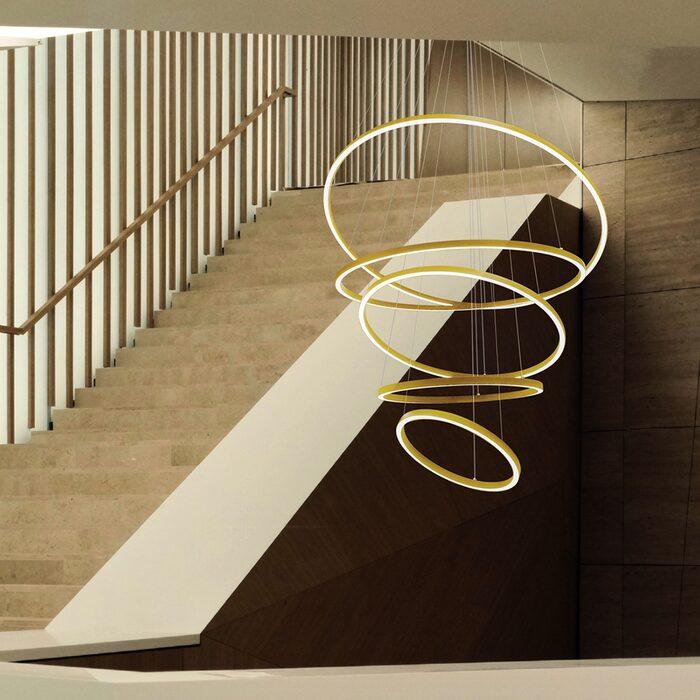 Introducing the Circle Light Down 5 Tier Pendant Gold 120/100/80/60/45 from Modern Lights, a masterpiece of luxurious design and exceptional craftsmanship.