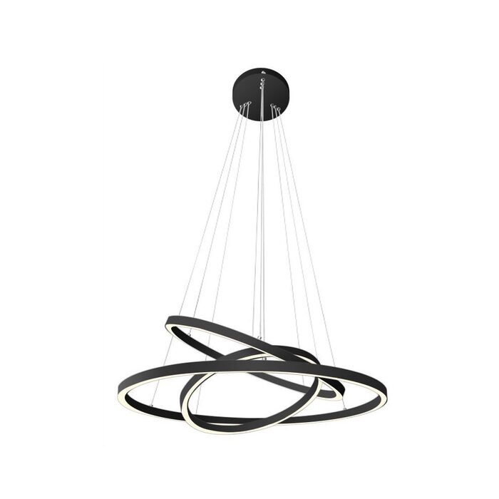 A very unusual pendant consisting of three black circles each with LED's that shine down only.
