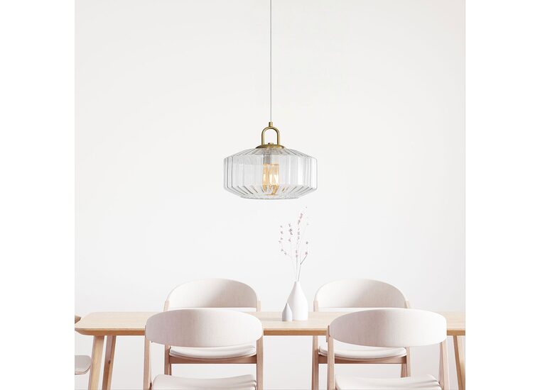 The combination of clear ribbed glass and satin brass metalware brings a subtle mid-century flair to your home.