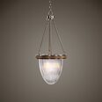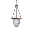 Industrial roots show in the halophane glass used on this 1 Lt. pendant, we have warmed the look up with a fruitwood finished upper wood ring.