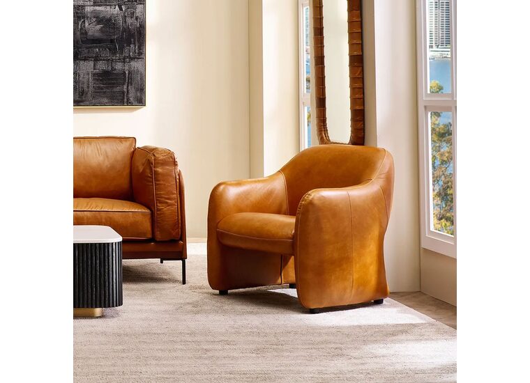 Inspired by modern design with a timeless appeal, this Clifton armchair is crafted from top grain cow leather in a refined light brown leather finish.