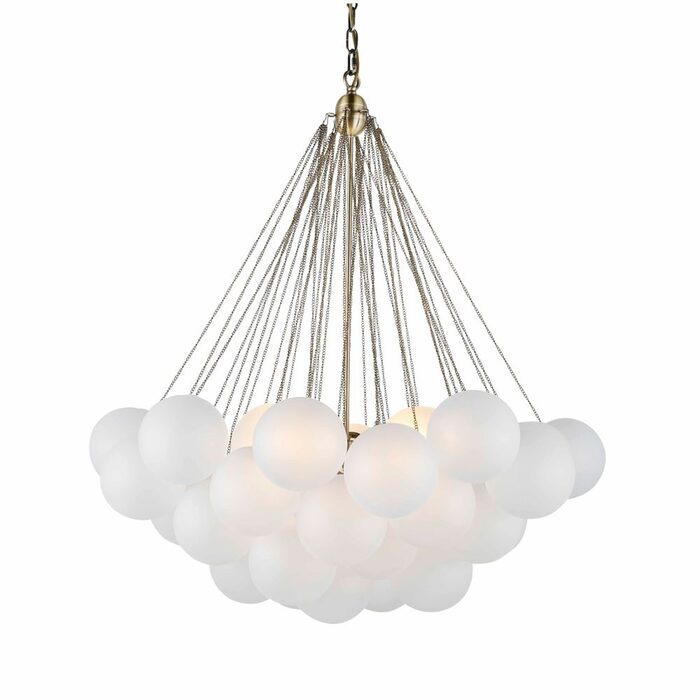 Creating a soft luminous form, the cloud pendant transforms your ordinary ceiling into a cloud-filled sky. Glass orbs are frosted by hand to create this splendid and delicate pendant, unique in design and a true piece of art. Reminiscent of a dreamy cloud a soft glow is refracted from central light sources through to the surrounding cluster of orbs.