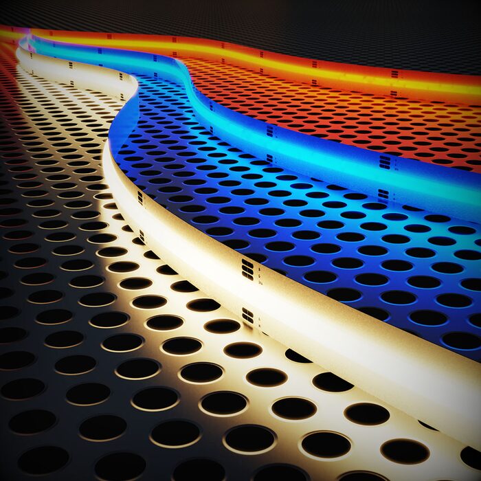 AQS-173 is the latest technology in RGB+3000K COB Strip lighting. Use for internal illumination, the COB LED Strip minimises the issue of dark LED dots for a clean continuous linear light source.