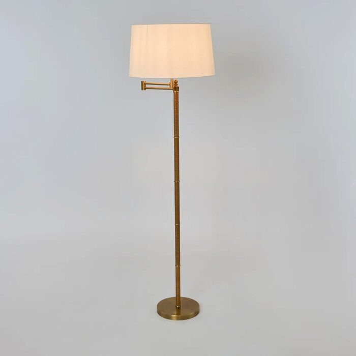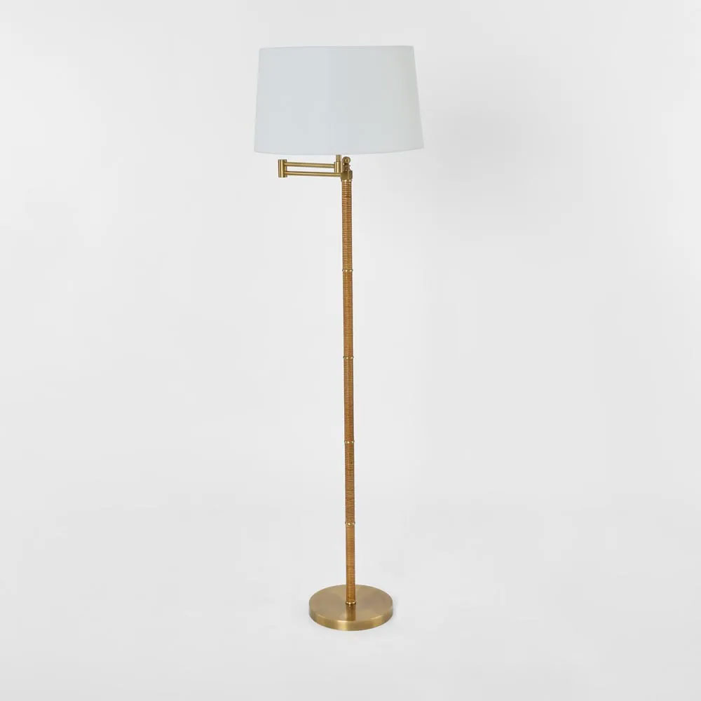 Blending classic charm with contemporary design, this floor lamp features a beautifully wrapped rattan detail paired with a warm brass finish.