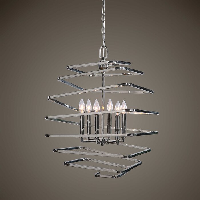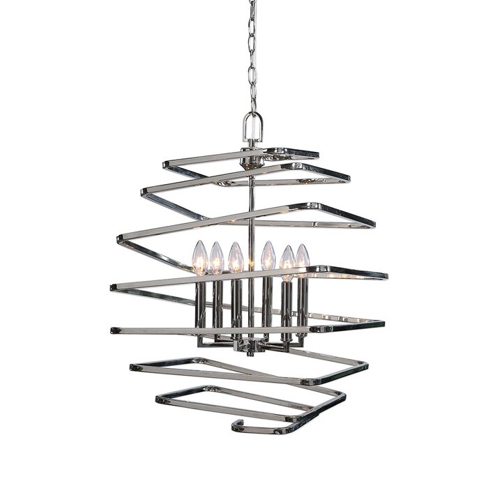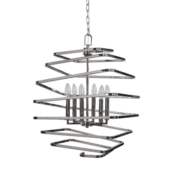 A whimsical polished nickel coil frame gives this 6 Lt. pendant a playful springy, bouncy feel with modern edge.