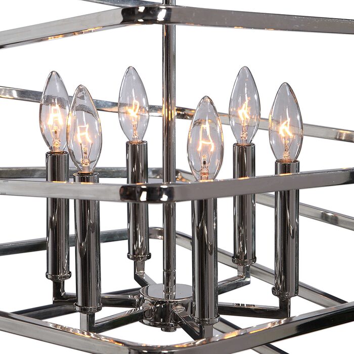 6-60 watt max, candelabra sockets. Includes 15' wire & 7' chain.
