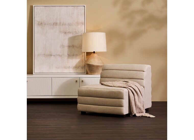Perfect for design enthusiasts, this chair boasts a mid-century modern-inspired aesthetic and plush channel tufting, enveloped in a luxurious natural linen blend fabric.