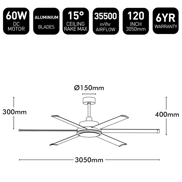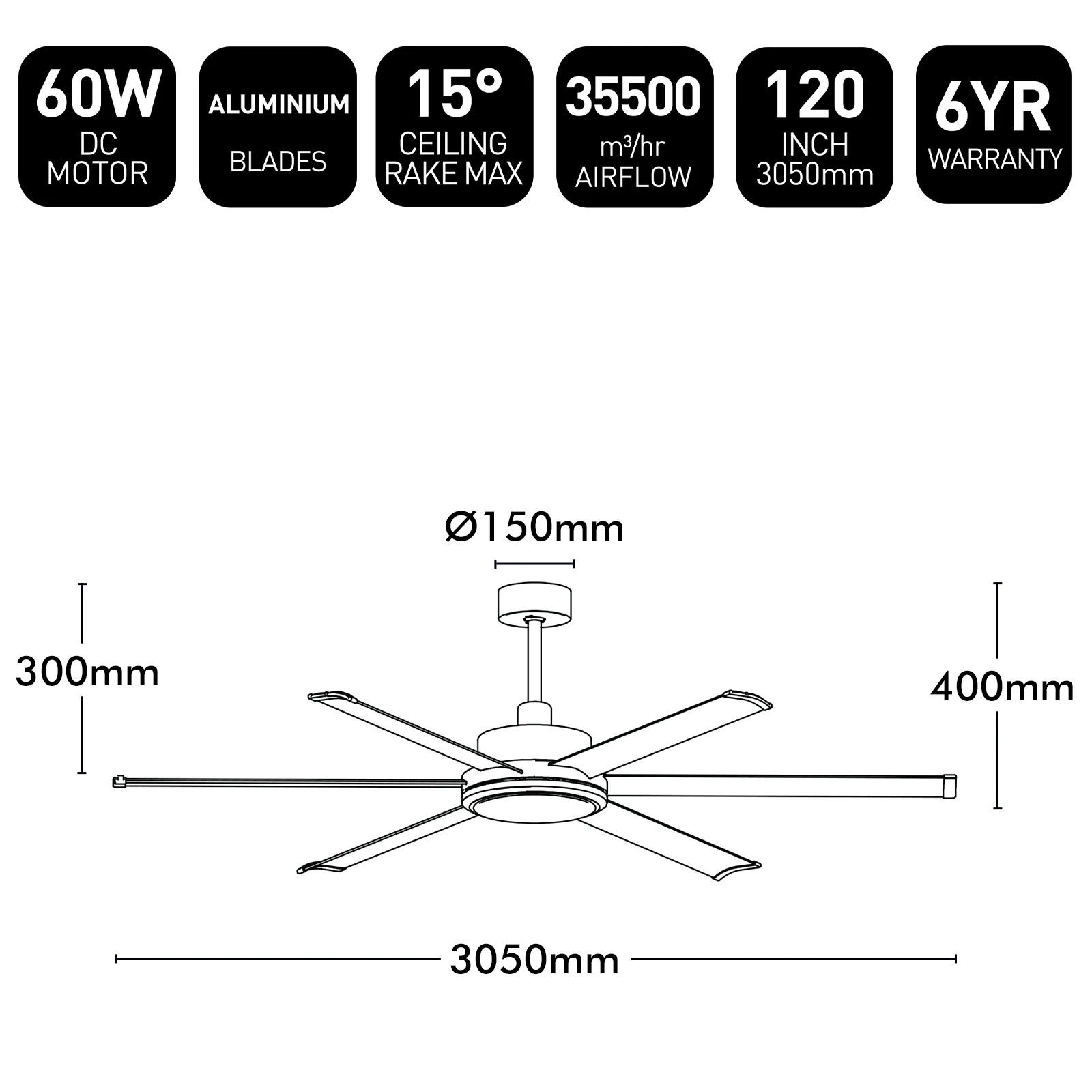 - Blade material: Aluminium (x6)