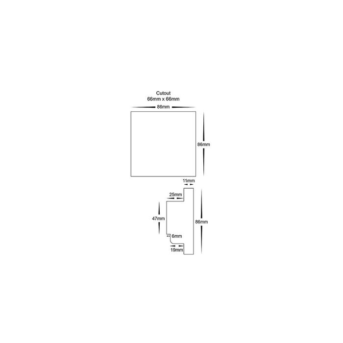 - Cutout: 66mm x 66mm