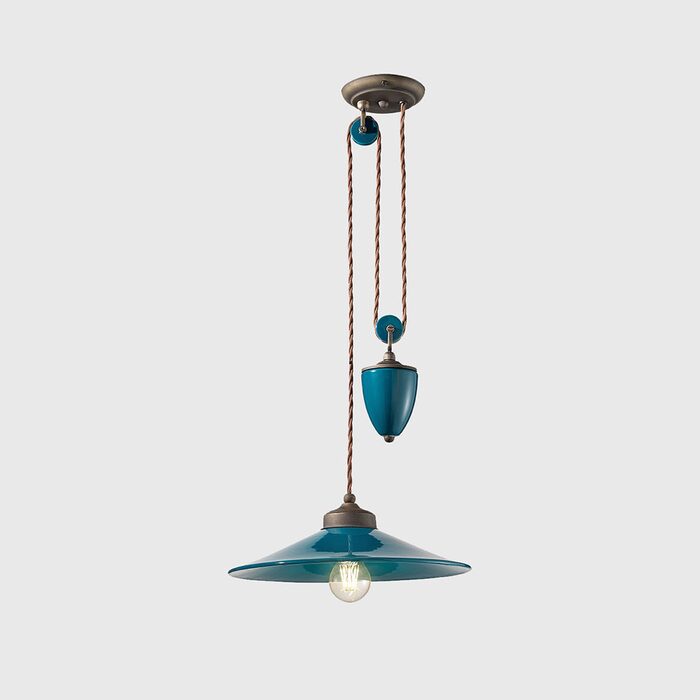 Colours Rise & Fall Pendant Light by Ferroluce was inspired by the exuberance of retro aesthetics, this collection features a kaleidoscope of hues, each lighting fixture thoughtfully designed to showcase a spectrum of captivating colours.