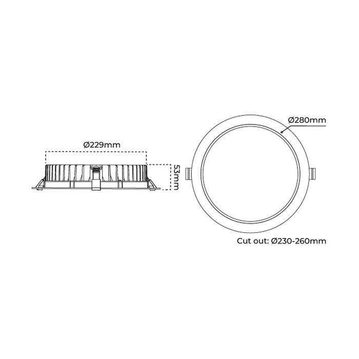 Commercial Dimmable 35 watt LED downlight in tri-colour