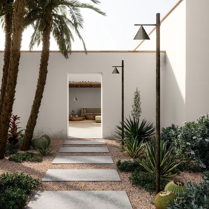 The range includes modern pendant lamps and wall lamps of various types and sizes and garden poles.