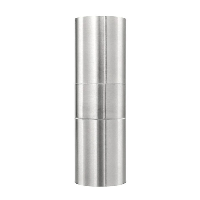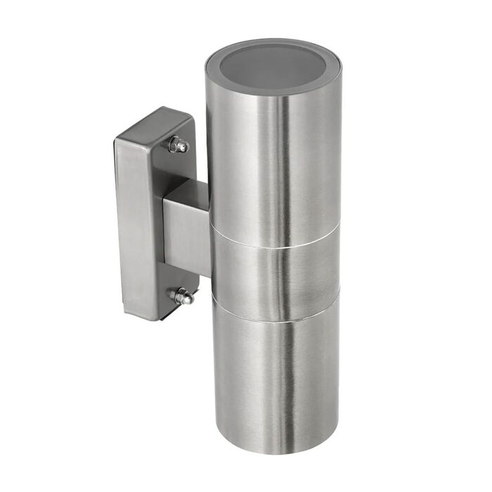 This up/down exterior light is designed for wall configuration, stainless steel body powder coated.