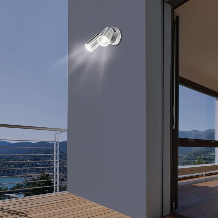 Fully adjustable heads Wall or ceiling configuration IP44 weather resistant rating. Energy saving LED compatible.