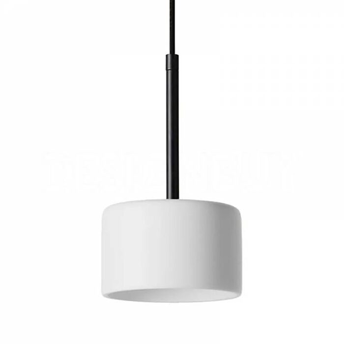 Cora Pendant Light designed by AC Studio for Aromas dek Campo features a slimline metal rod and compact cylindrical ceramic shade. This minimal and contemporary pendant has an understated calm and effortless elegance which allows it to sit comfortably in many interior settings as an individual suspension or in a composition.