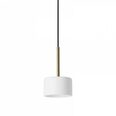 Cora Pendant Light designed by AC Studio for Aromas dek Campo features a slimline metal rod and compact cylindrical ceramic shade. This minimal and contemporary pendant has an understated calm and effortless elegance which allows it to sit comfortably in many interior settings as an individual suspension or in a composition.
