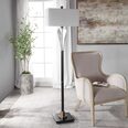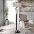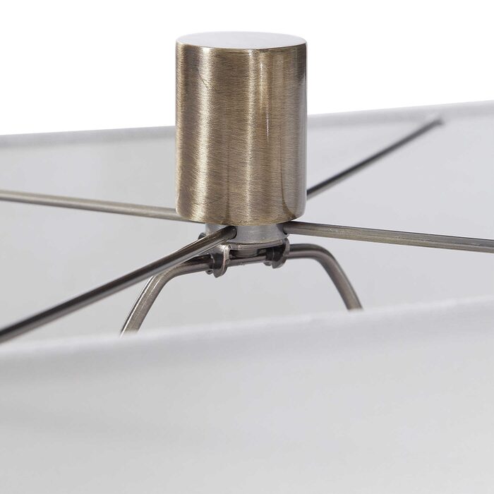 The rectangle hardback shade is a white linen fabric.