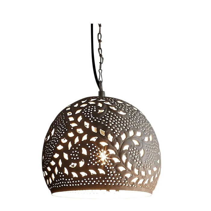 The Coral pendants are crafted from perforated metal with a matte white raised and etched finish giving a delicate decorative porcelain appearance.