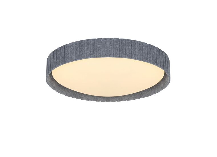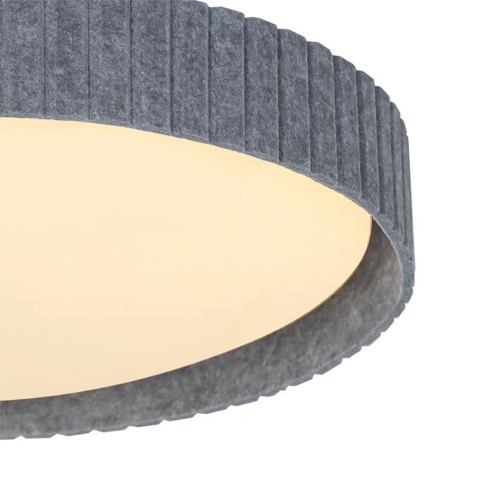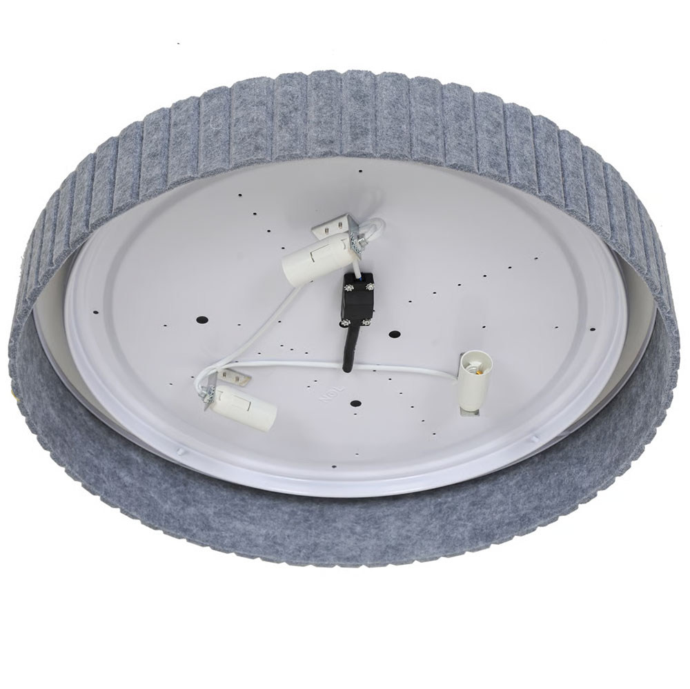 The shade is made of plastic and is surrounded by felt, creating a soft and decorative look.