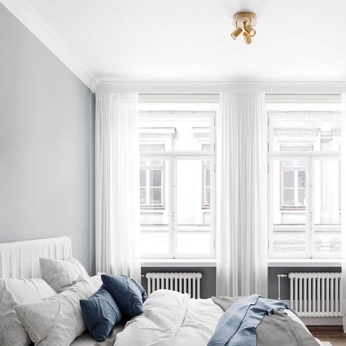 Correct is a 3-spot ceiling spotlight in metal with a directional head. The lamp perfectly suits all rooms of the home with its sleek and discreet design.