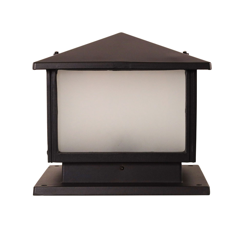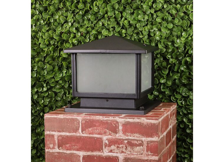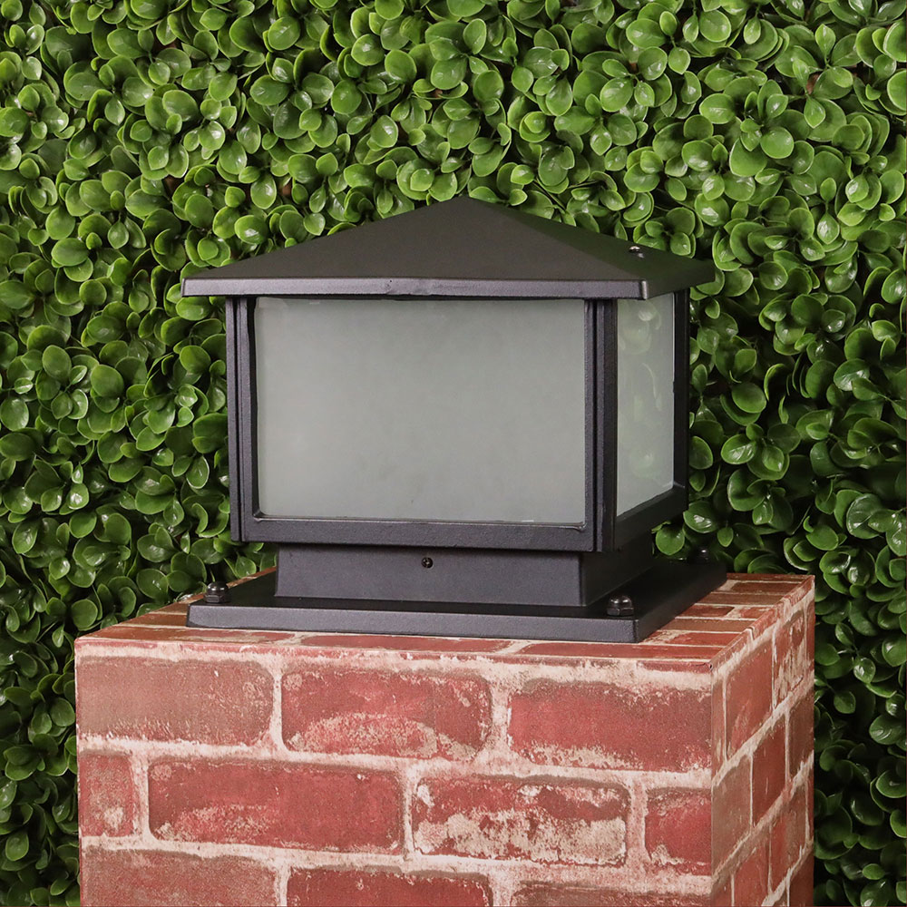 Designed for mounting on top of a pillar, the Cortez gives any entry gate a regal appearance. Di-cast aluminium, powdercoated in a textured black, with frosted glass panels.