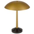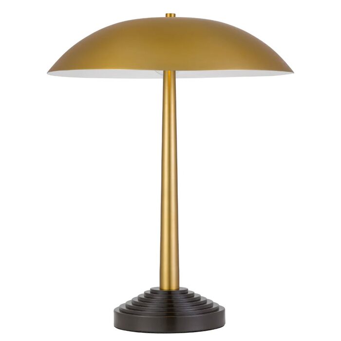 The Corvus table lamp features a sleek iron construction with a satin finish, combining antique brass and dark coffee tones.