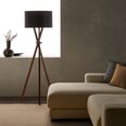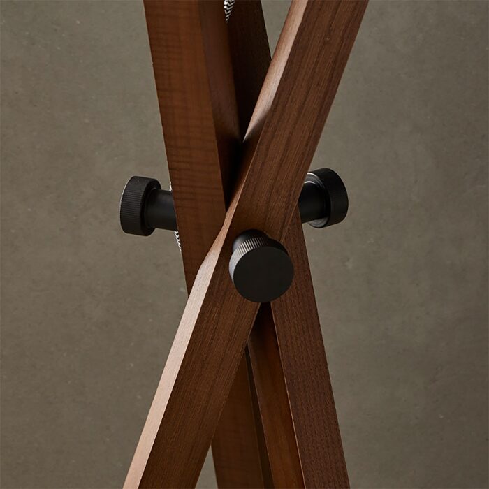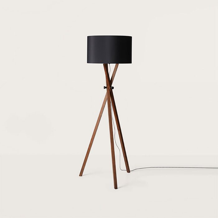 COT Floor Lamp by AC Studio-Aromas is an elegant lamp with a tripod equipped with a Walnut wood frame and a powerful black fabric shade.