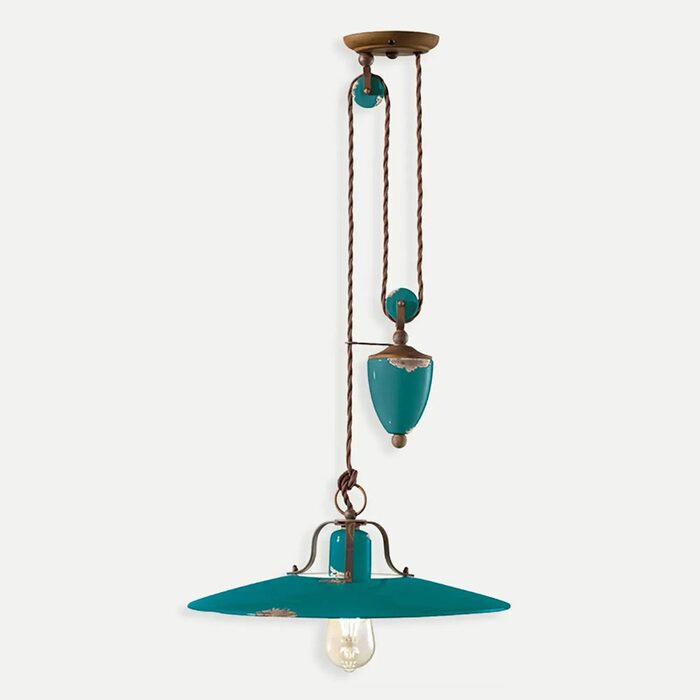 With six vibrant finishes to choose from—Orange, Red, Yellow, Blue, Green, or White—the Country Counterweight Pendant Light offers versatile options to suit various decor styles.