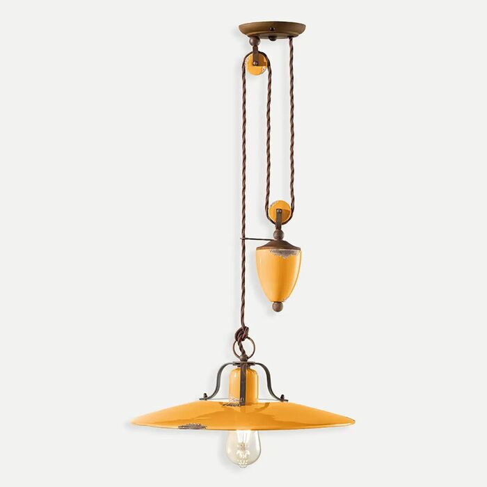 With six vibrant finishes to choose from—Orange, Red, Yellow, Blue, Green, or White—the Country Counterweight Pendant Light offers versatile options to suit various decor styles.