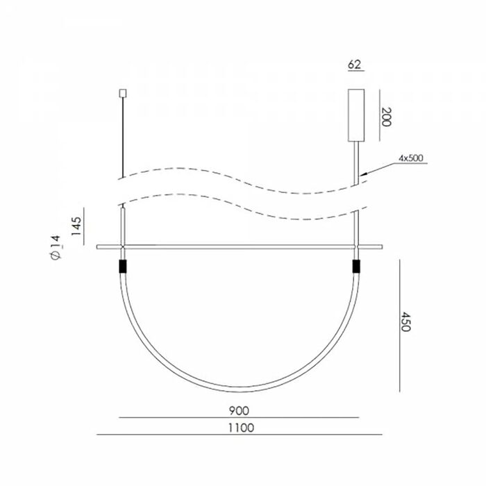 It stands out for its continuous light effect along the arch, which provides elegant and enveloping lighting to the space. Its lightness makes it perfect for multiple uses in lighting projects, whether suspended over dining rooms, bedrooms or even over kitchen tables.