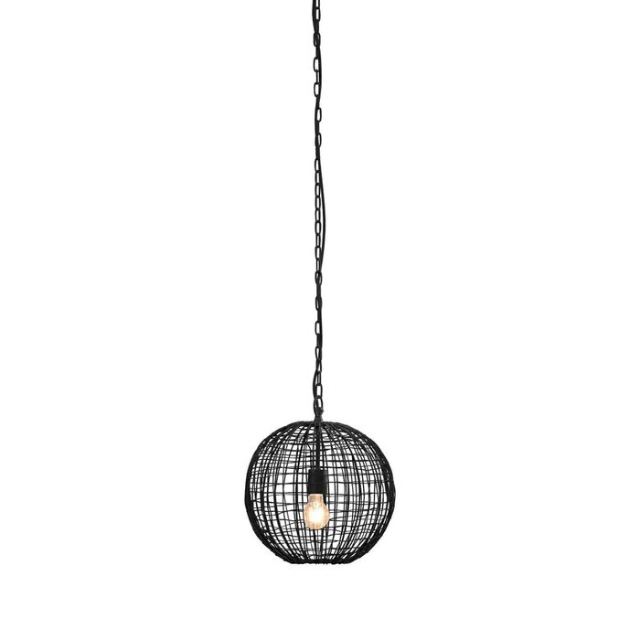 An open wire weave pendant in black finish that creates visual interest while maintaining an open feel to the room. The design is inspired by cray fishing traps.